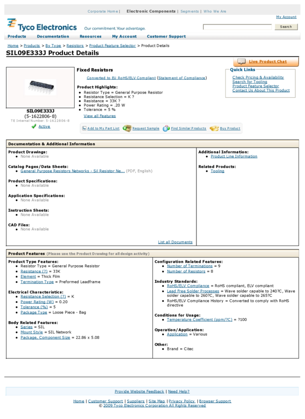 Res Thick Film NET 33K Ohm 5% 1/5W ±100ppm/°C BUS Conformal 9-Pin SIP Pin Thru-Hole Bag