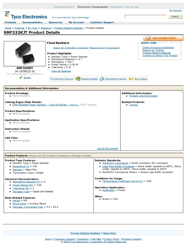 Res Metal Film 33K Ohm 5% 3W ±100ppm/°C Molded SMD T/R