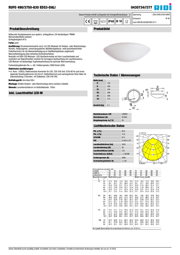 Lampa sufitowa LED RIDI 0430734//377 0430734//377 3420 lm biały