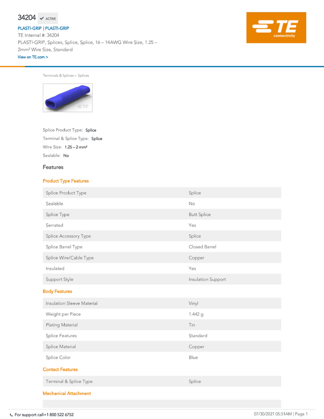 TE Connectivity TE AMP PLASTI-GRIP Terminals 34204, 1 szt.