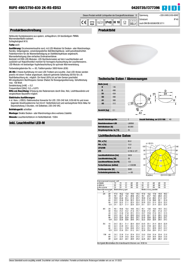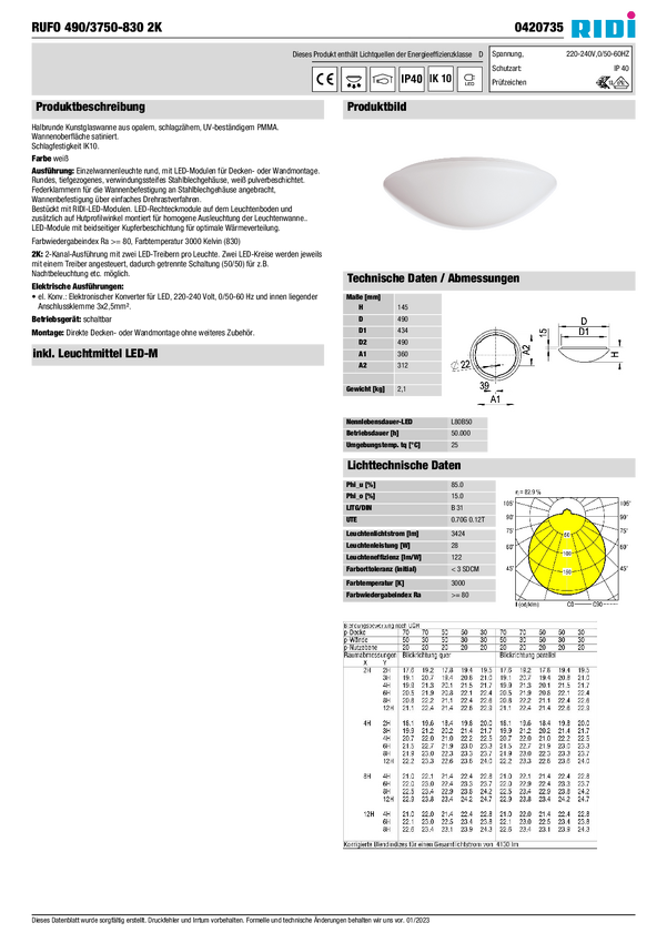 Lampa sufitowa LED RIDI 0420735//377396 0420735//377396 3420 lm biały