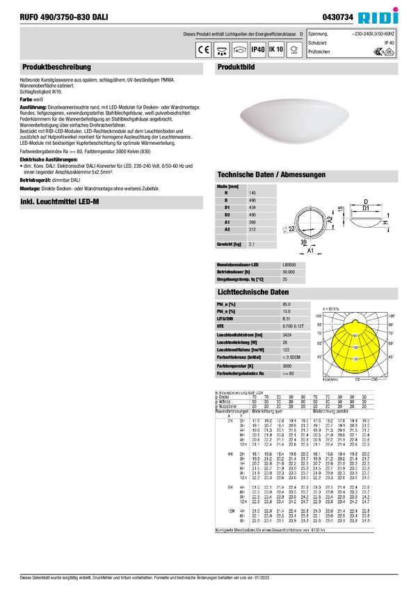 Lampa sufitowa LED RIDI 0420734//396 0420734//396 3420 lm biały