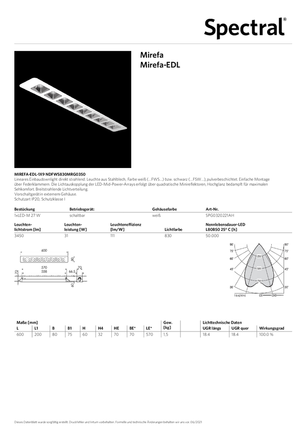 Oświetlenie wewnętrzne LED RIDI SPG0330221AH SPG0330221AH 31 W 3450 lm