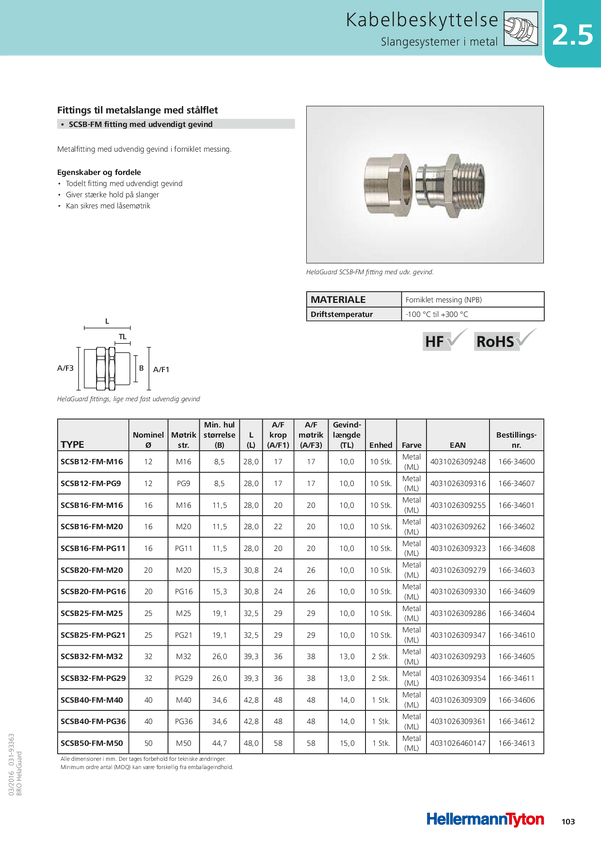 Złącze śrubowe do węża HellermannTyton SCSB50-FM-M50-NPB-ML 166-34613, prosty, 1 szt.