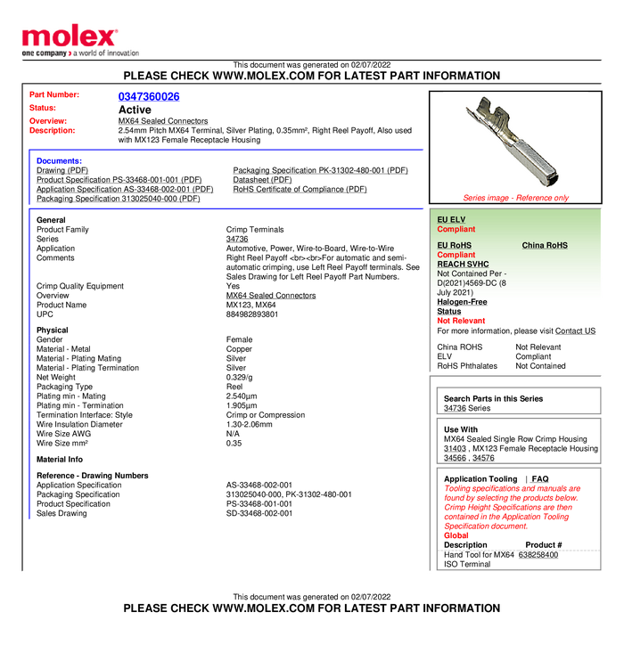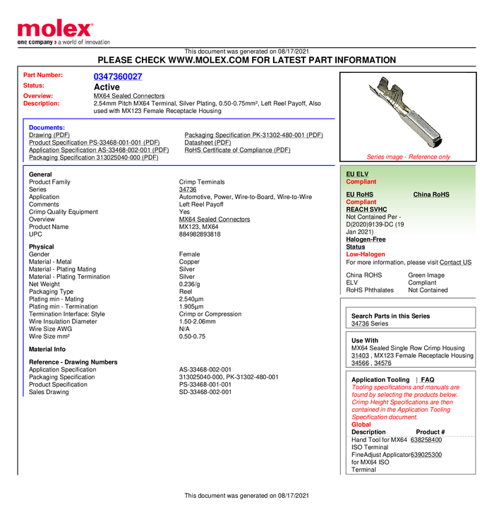 Złącze 347360027 Molex Zawartość: 1 szt.