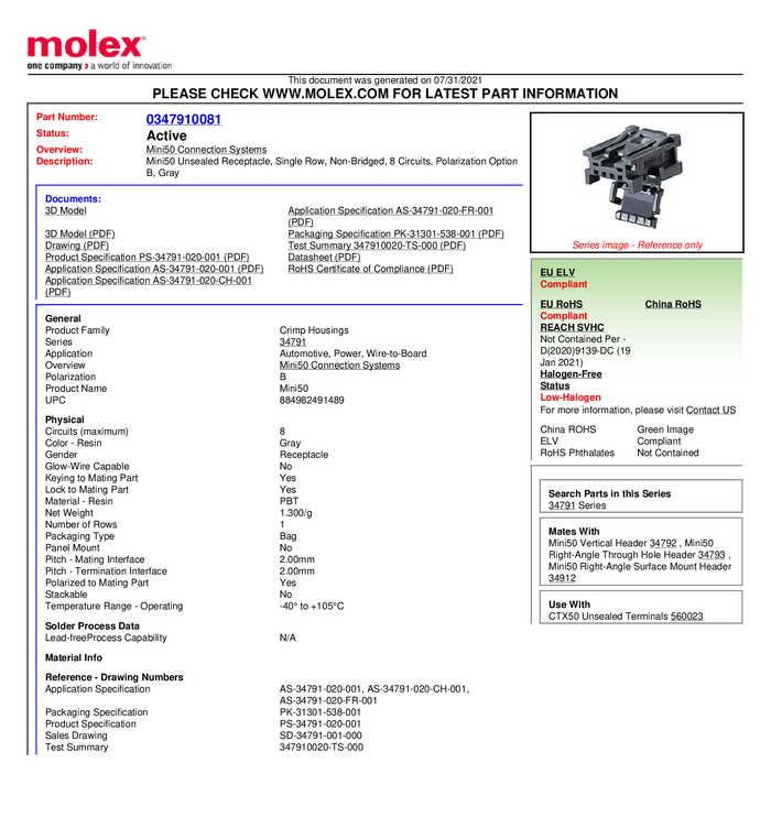 Molex 347910081 Obudowa złącza pin żeńskiego na kabel 1 szt.