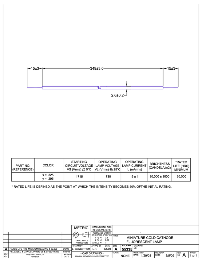 Lampa CCFL; 1715 V; średnica 2.6mm x 349 mm Start volt. 1715V ; zasilanie lampy 730V ; prąd 5 mA Color - Temperatura barwowa 6900K