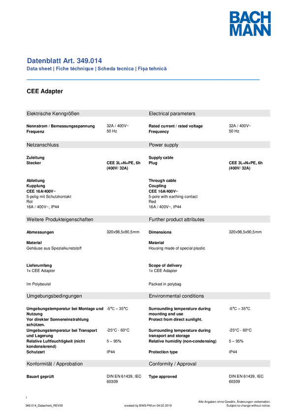 Bachmann Rozdzielacz prądowy CEE 349014 349014