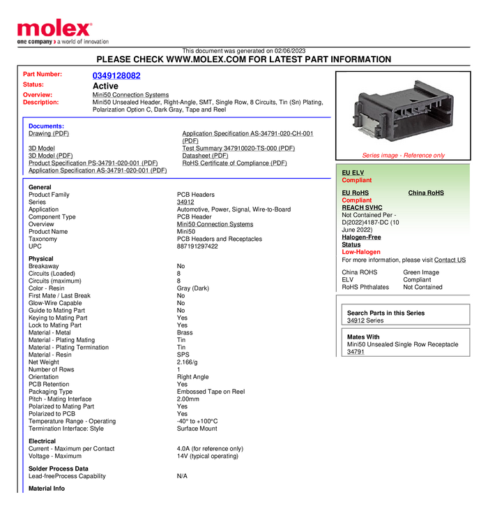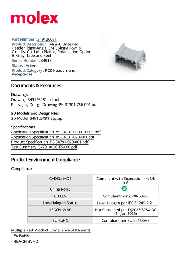 Molex 349128082 Listwa kołkowa, męska, do wbudowania, standardowa, piny: 8, 1 szt.
