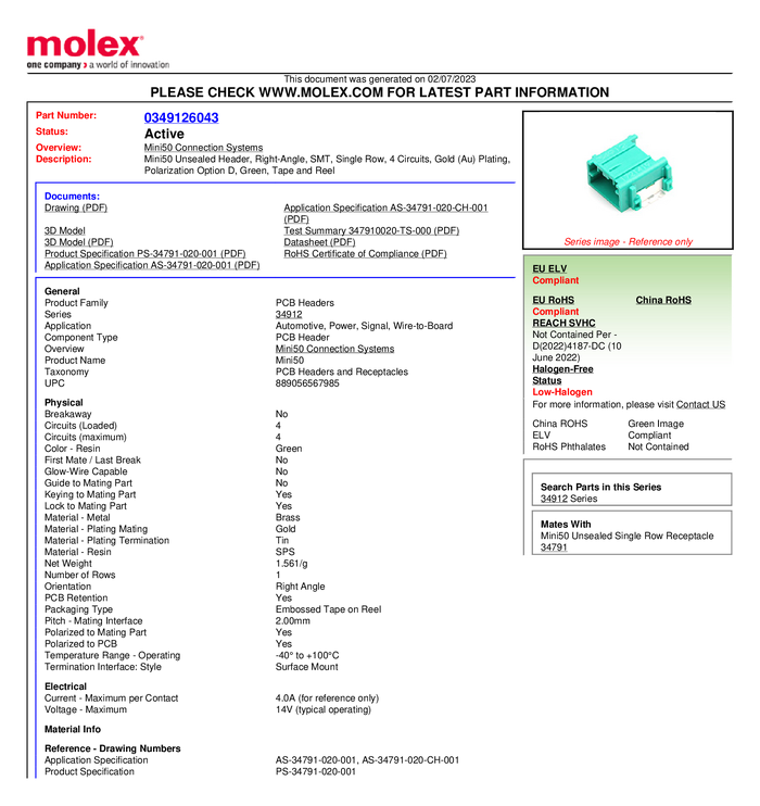 Molex 349126043 Listwa kołkowa, męska, do wbudowania, standardowa, piny: 4, 1 szt.