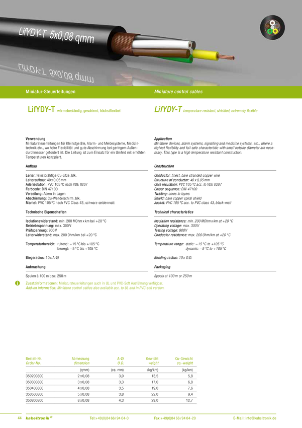 Przewód sterowniczy Kabeltronik LifYDY 350300800-1, 3 x 0.08 mm², Produkty w metrach bieżących, czarny