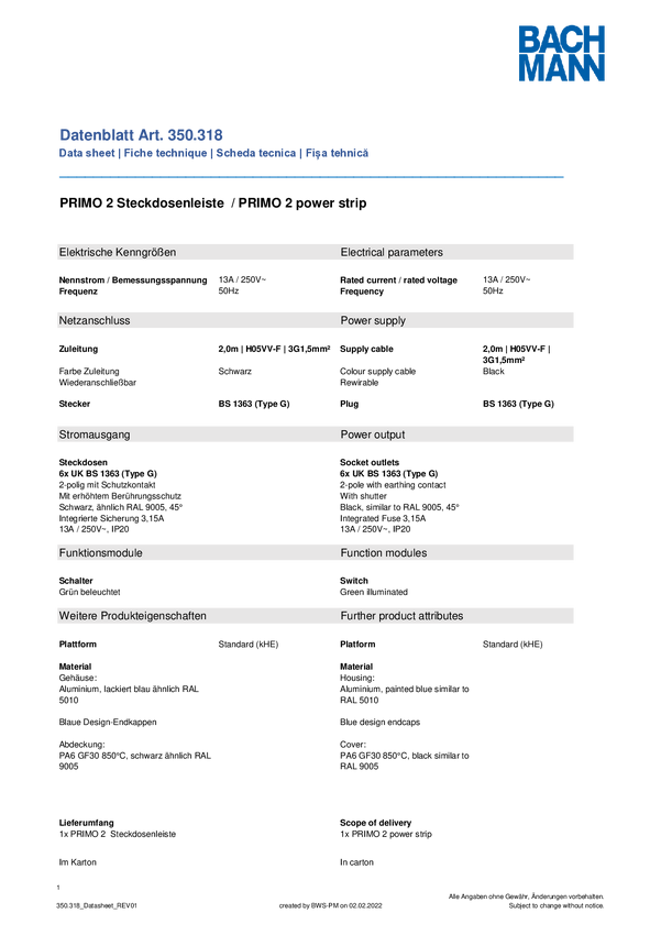 Listwa zasilająca Bachmann 350318 350318 Ilość gniazdek: 6