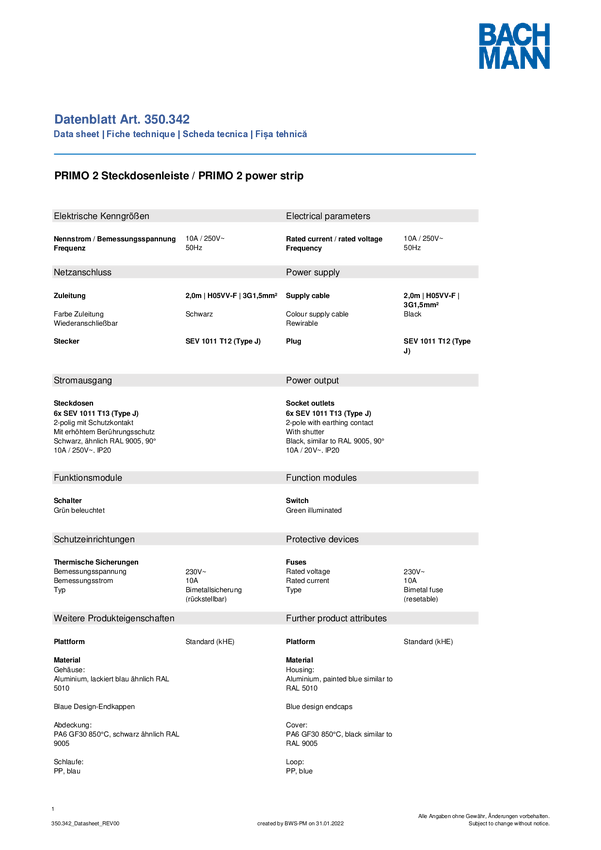 Listwa zasilająca Bachmann 350342 350342 Ilość gniazdek: 6