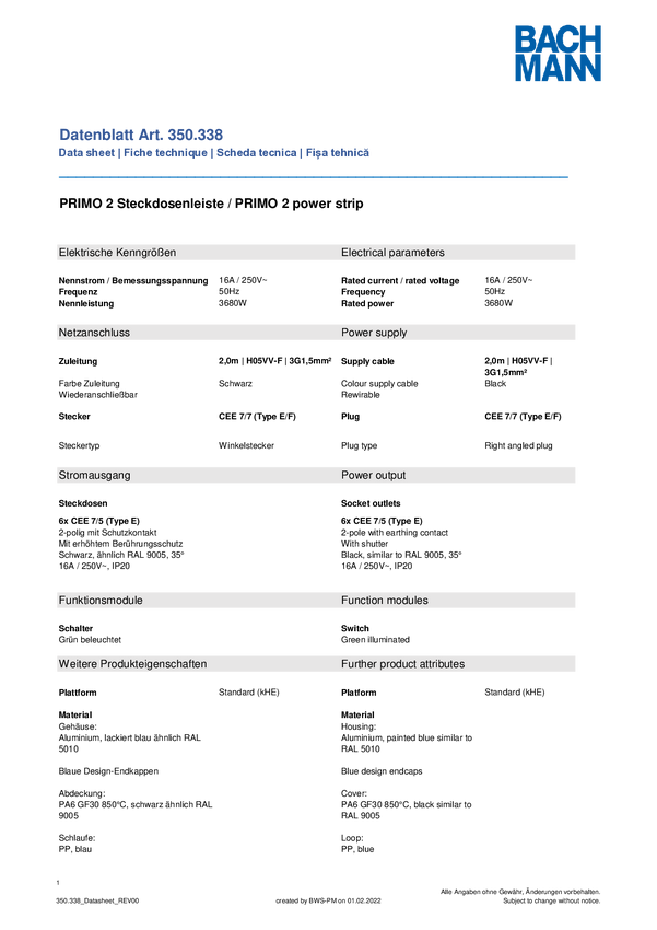 Listwa zasilająca Bachmann 350338 350338 Ilość gniazdek: 6