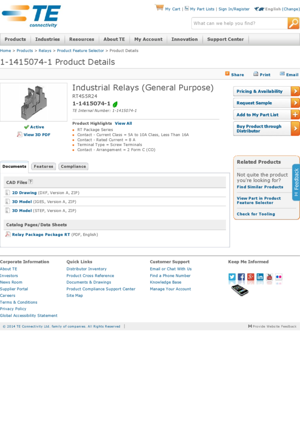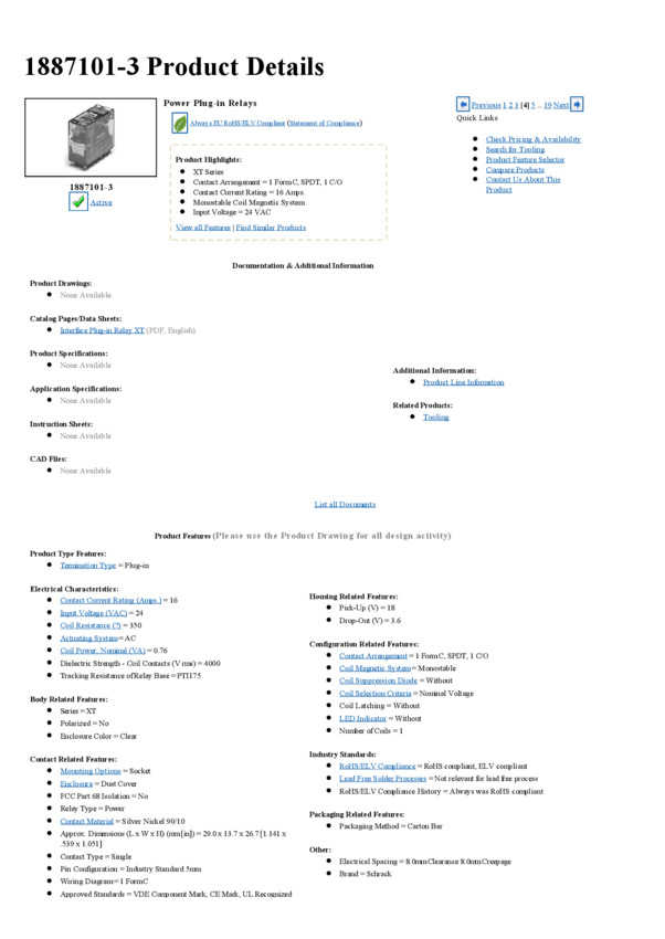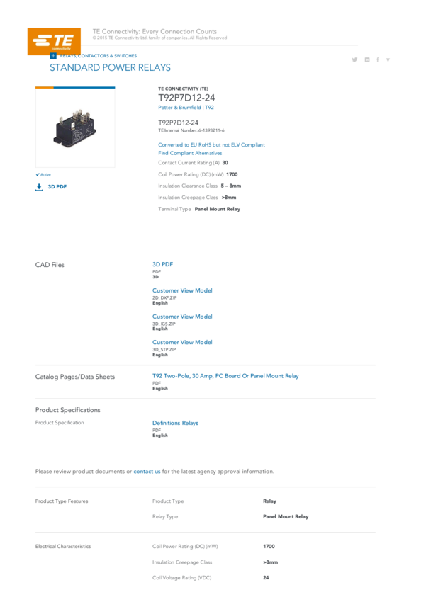 Electromechanical Relay SPST-NO 12A 24VAC 350Ohm Through Hole