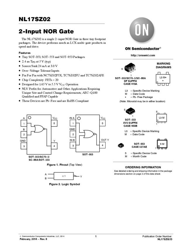 NOR Gate 1-Element 2-IN 5-Pin SOT-353 T/R