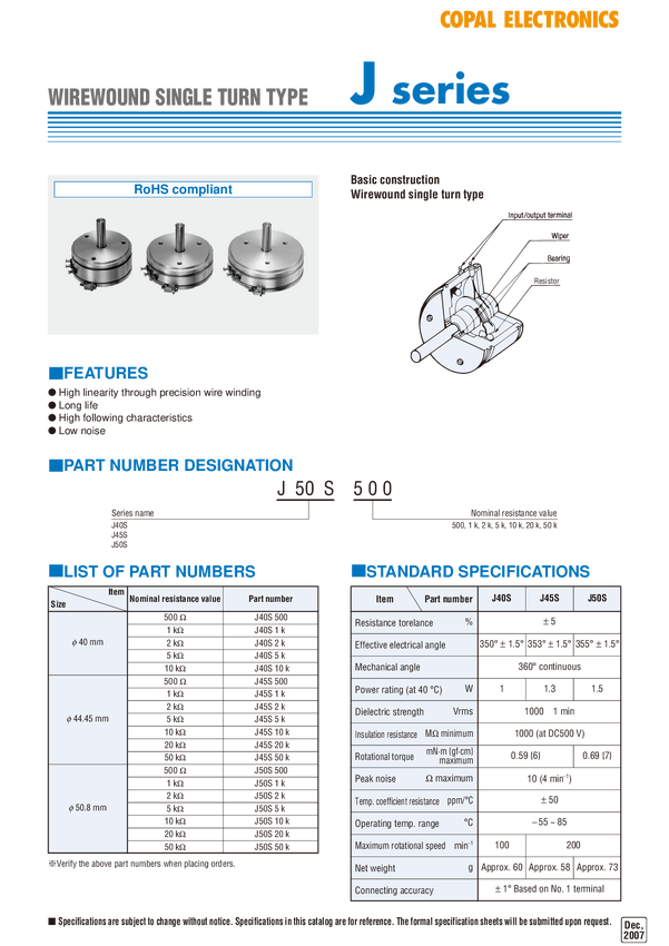 Potencjometr drutowy Servo 18; rezystancja 1 kohm 1 obrotowy; średnica 1-3/4"=44,45mm; gł.16,6mm; ośka 6 mm dł 20mm; trwałość 10 milionów cykli; liniowość 0,1%; rozdzielcz ość 0,1%; kąt 353 st.; tolerancja 5%; moc 1.3W;