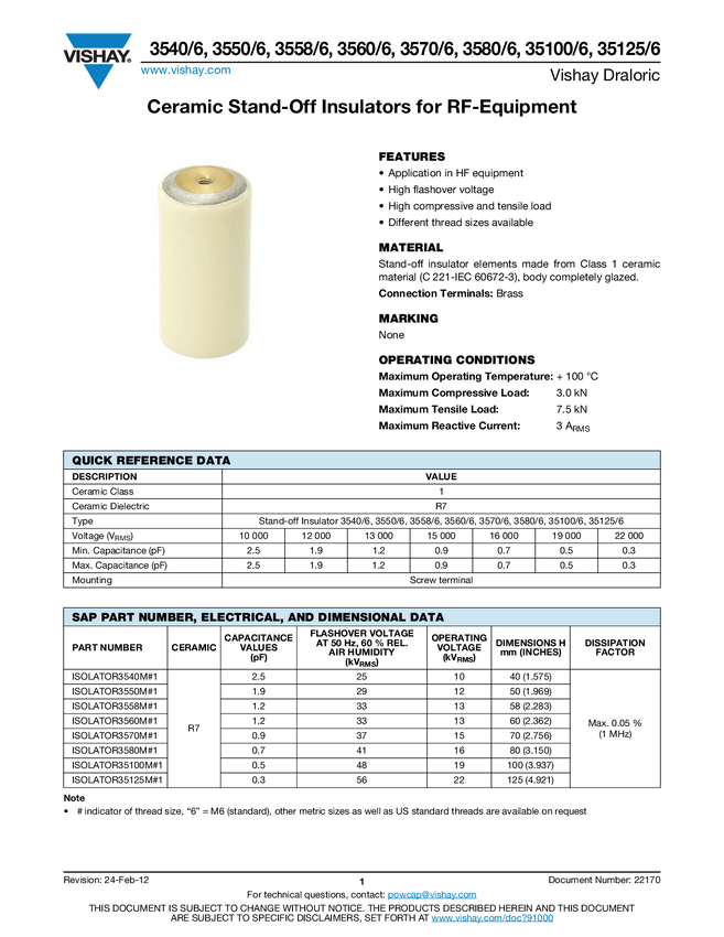 Ceramic Stand-Off Insulators for RF-Equipment
