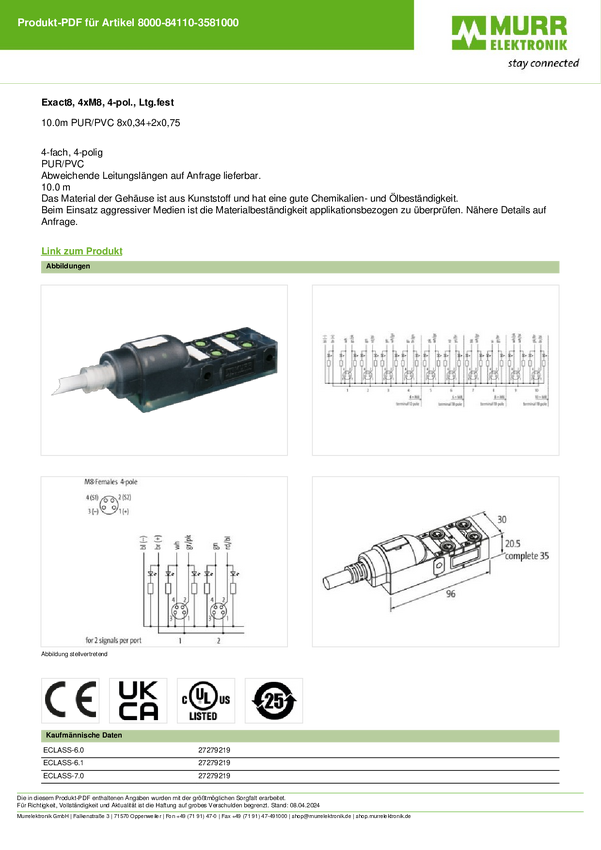 Rozdzielacz czujnik / element wykonawczy, pasywny Murrelektronik 8000-84110-3581000 1 szt.