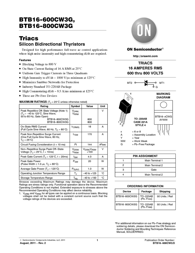 Triac, 3 Quadrant Internally Isolated, 35 mA IGT, 16 A IT(RMS)