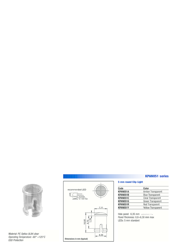 Klosz do diody LED 5mm, zielony-przezroczysty [transparent], ochrona ESD, otwór w panelu 6.35mm