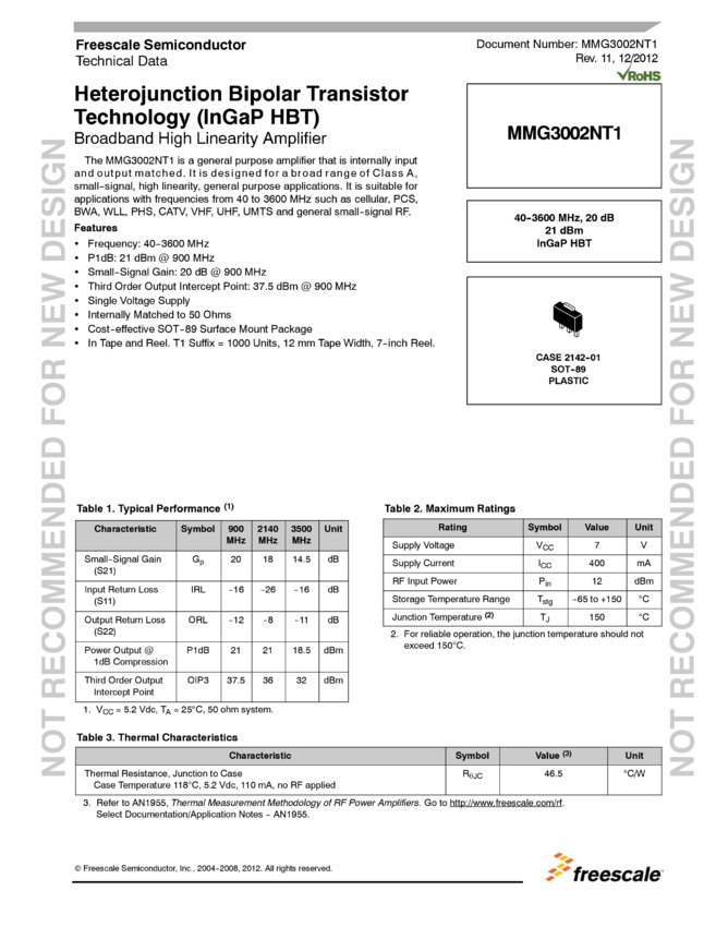 40-3600 MHz, 20 dB, 21 dBm InGaP HBT