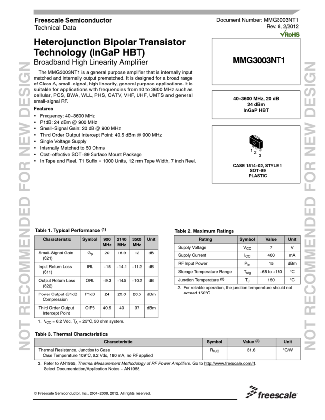 40-3600 MHz, 20 dB, 24 dBm InGaP HBT