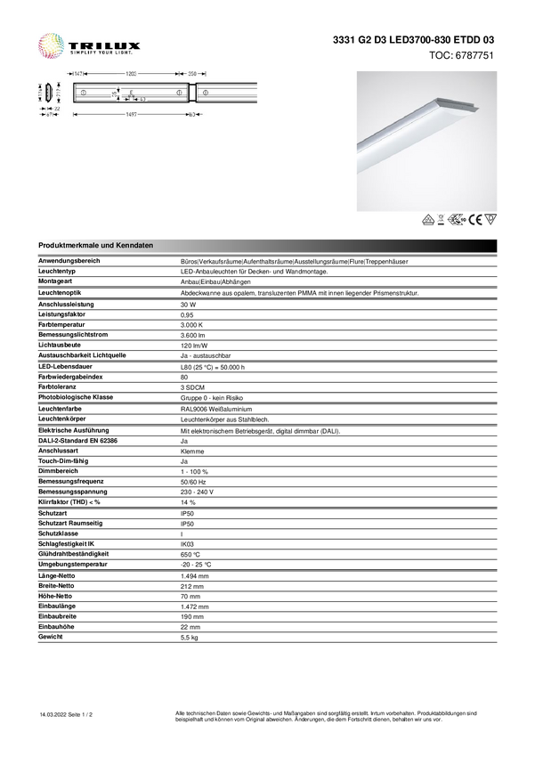 Lampa sufitowa LED Trilux 3331 G2 D3 #6788540 6788540 30 W 3600 lm biały