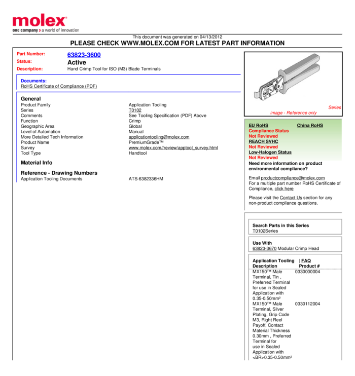 Hand Crimp Tool for 45570 Series 3.96mm Pitch MarKK Crimp Terminals