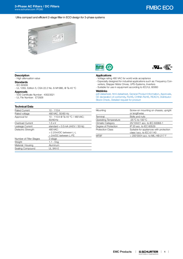 FMBC ECO FILTER 3PH 2ST 80A 480VAC