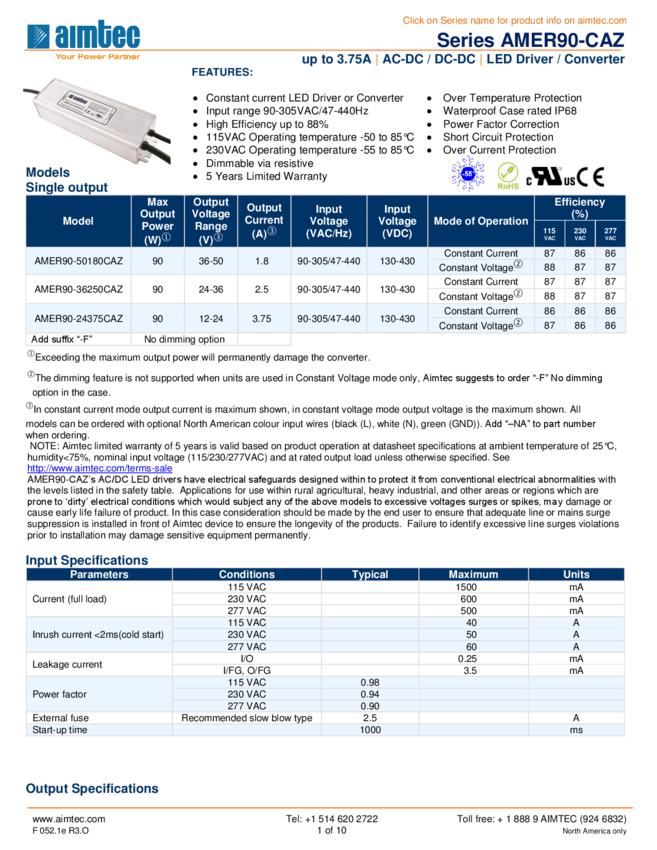 AC/DC Power Supply Single-OUT 36V to 50V 1.8A 90W