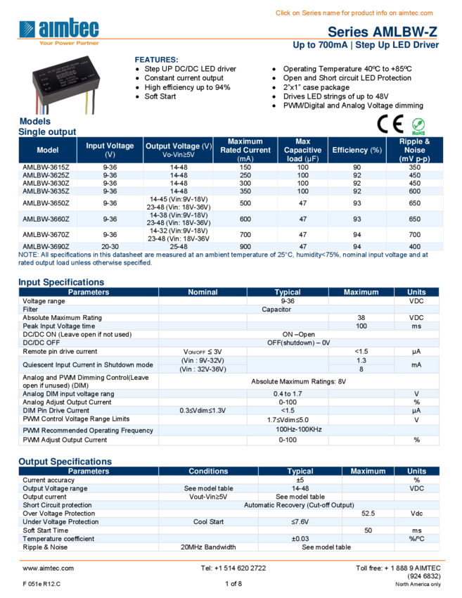 LED DRVR Module 1-CH IP68 50V 1.8A
