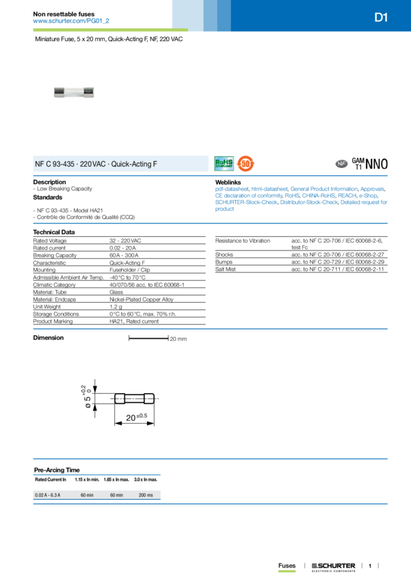 Fuse Miniature 0.2A 220V Fast 2-Pin Cartridge Holder Box