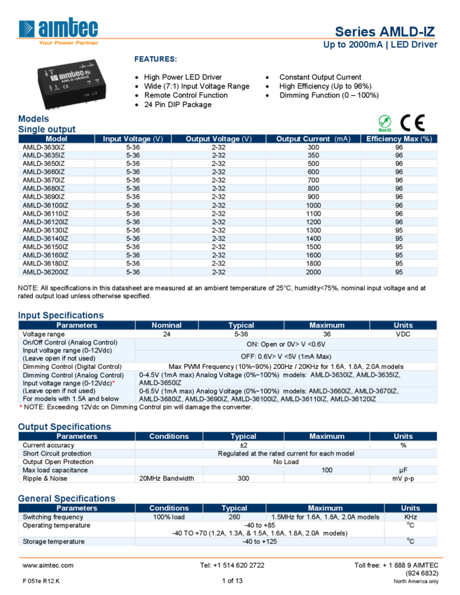 LED DRVR 12V/15V/18V/24V 6-Pin