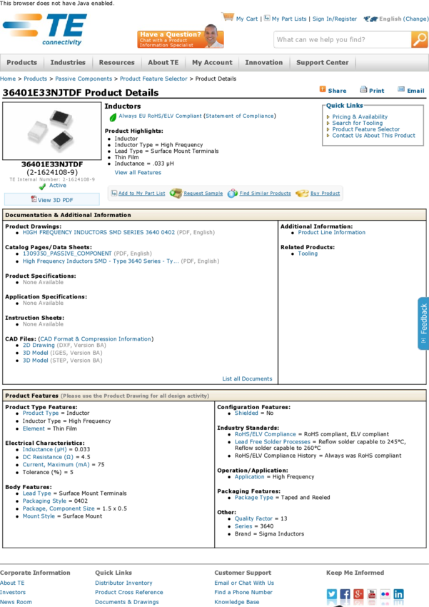 Ind High Frequency Chip Molded/Unshielded Thin Film 33nH 5% 500MHz 13Q-Factor 75mA 0402 T/R
