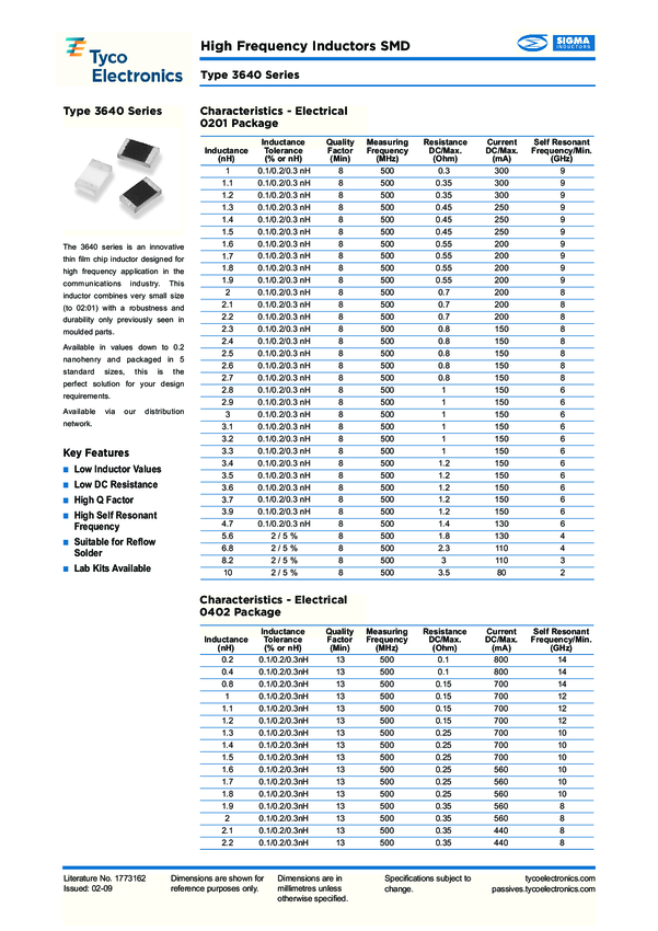 Ind High Frequency Chip Molded/Unshielded Thin Film 3.5nH 0.2nH 500MHz 13Q-Factor 380mA 0402 T/R