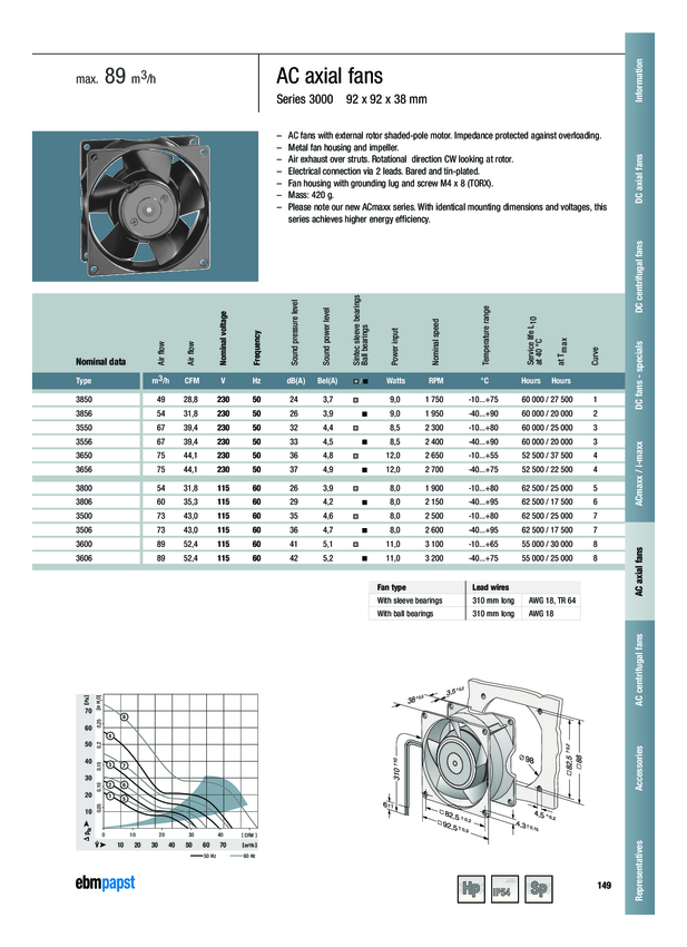 AC Fan Sintec-Sleeve Bearing 230V 12W 50Hz 2650RPM 44.14CFM 41dB Flange Mount