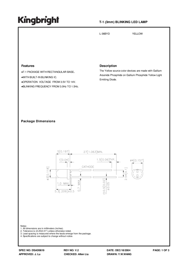 LED Uni-Color Yellow 590nm 2-Pin T-1