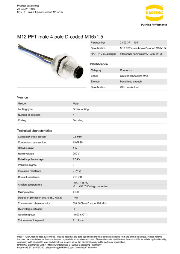 Harting 21 03 371 1405 Przepust ścienny, 1 szt.