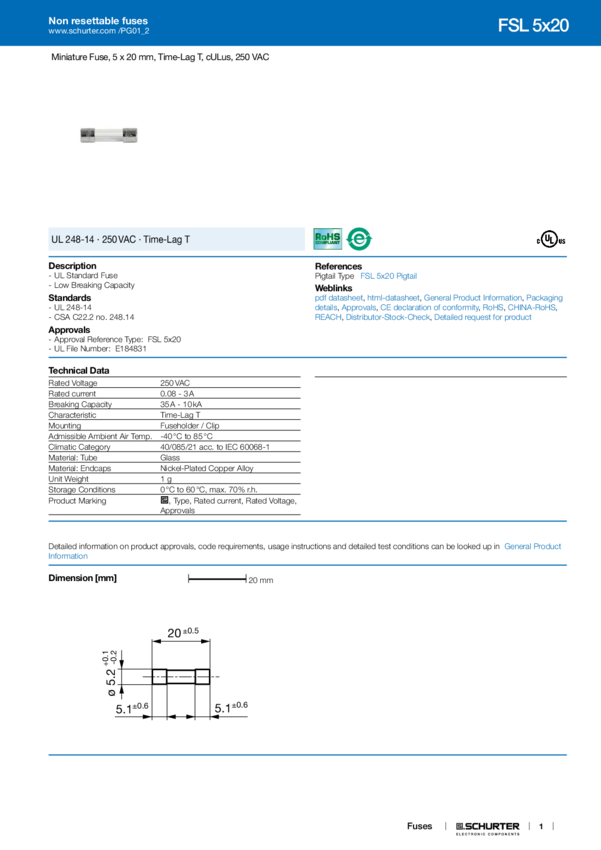 FSL 5X20 FUSE 3A T