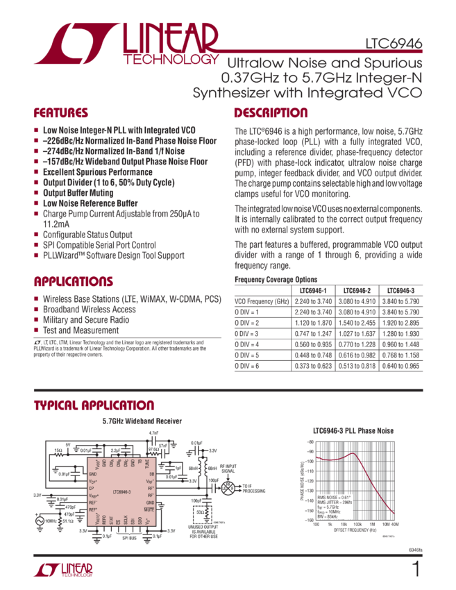 Ultralow Noise and Spurious 0.37GHz to 5.7GHz Integer-N Synthesizer with Integrated VCO