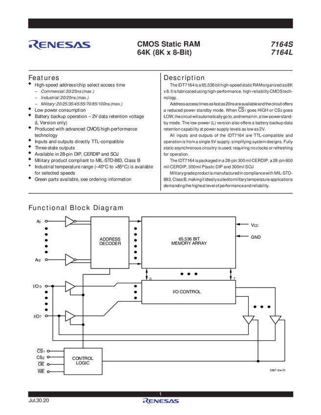 5.0V 8K x 8 Asynchronous Static RAM