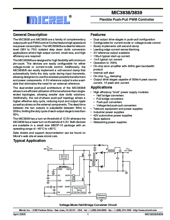 MIC3838/3839 - Flexible Push-Pull PWM Controller