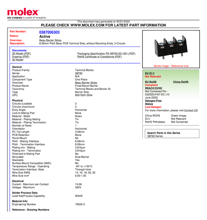 Molex 387006303 Terminal PCB Ilość styków 3 1 szt.