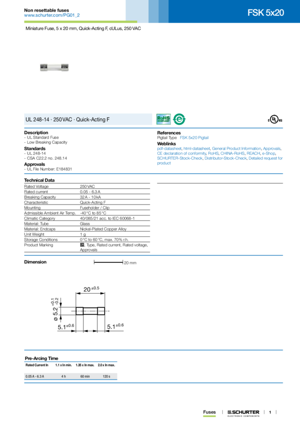 Fuse Miniature 0.7A 250V Fast 2-Pin Axial Through Hole