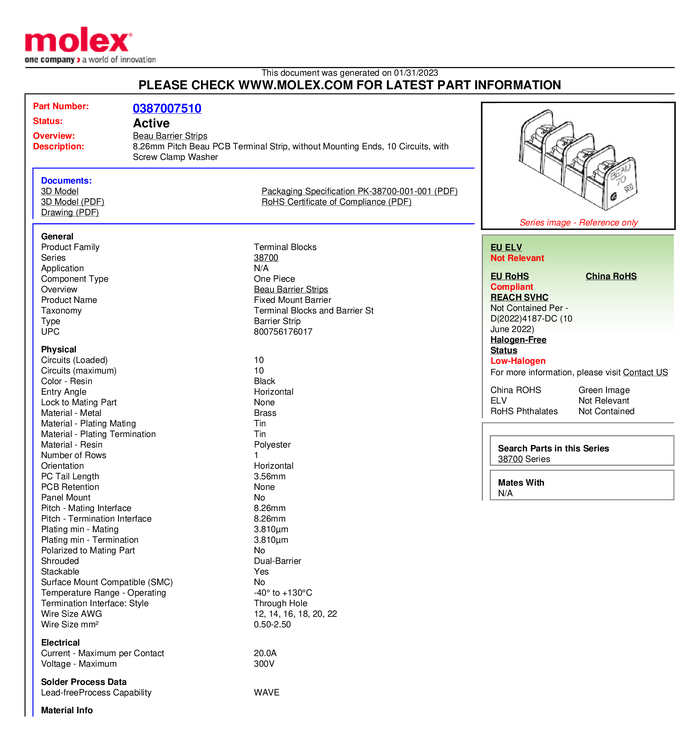 Molex 387007507 Terminal PCB Ilość styków 7 1 szt.