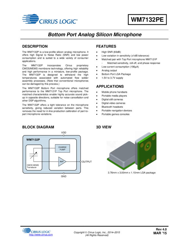 Mic Omni-Directional 150Ohm -38dBV 3.7V Rectangular Solder Pad