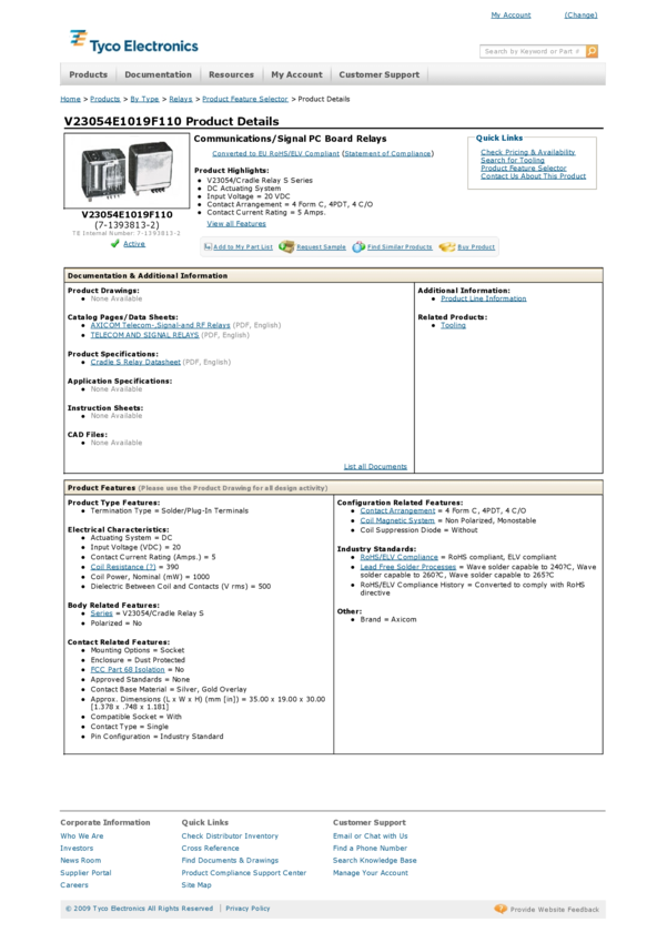 Electromechanical Relay SPDT 1A 5VDC 390Ohm Through Hole