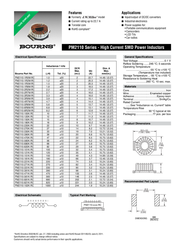 Ind Power Shielded Wirewound 150uH 10% 100KHz 12Q-Factor Ferrite 1.1A T/R