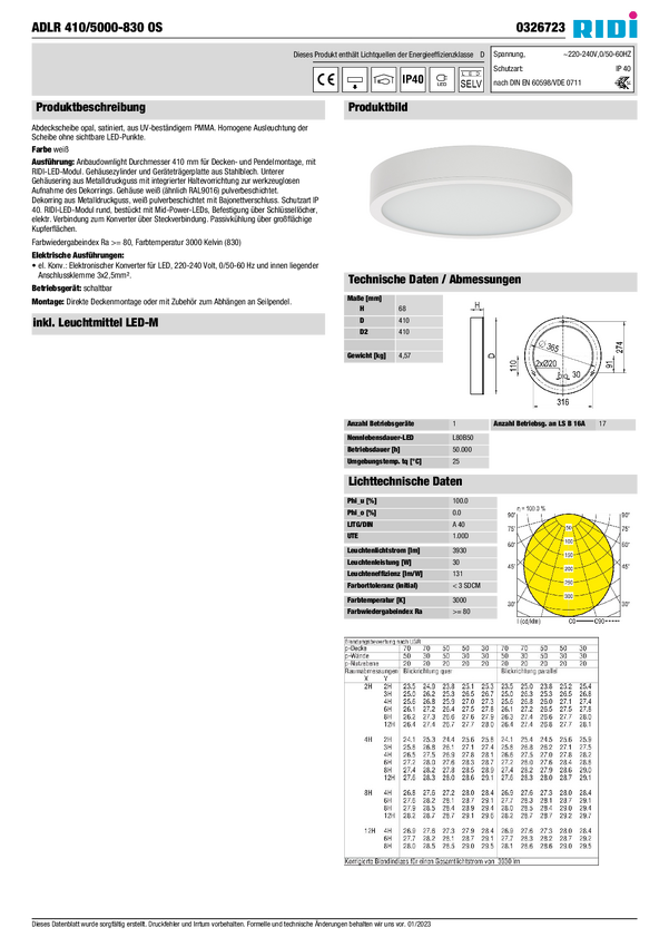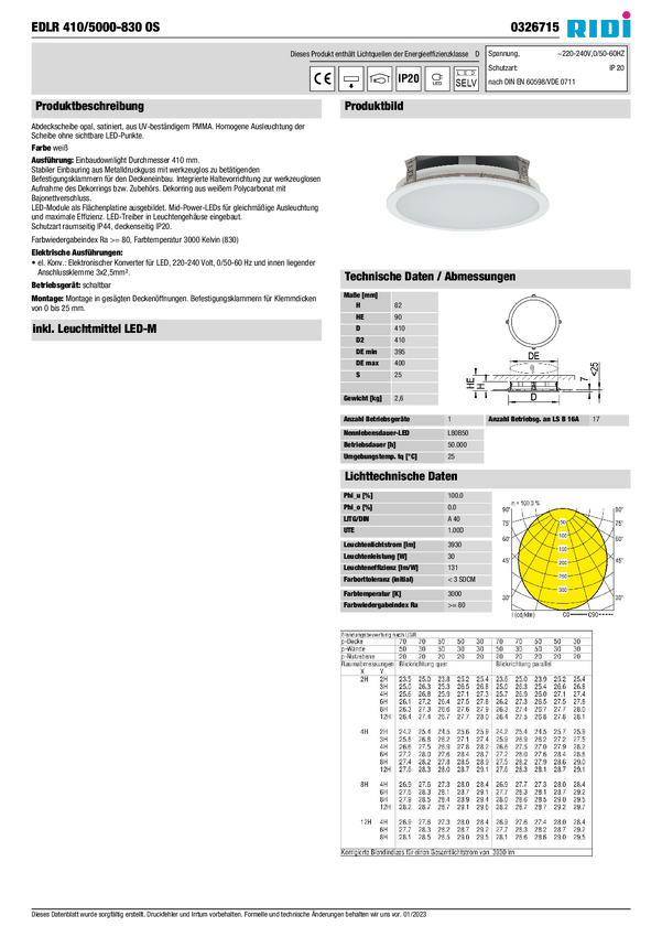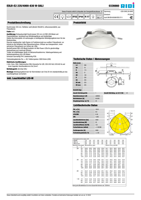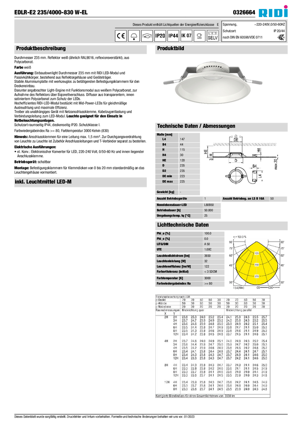 Oświetlenie wewnętrzne LED RIDI 336709 336709 30 W 3930 lm